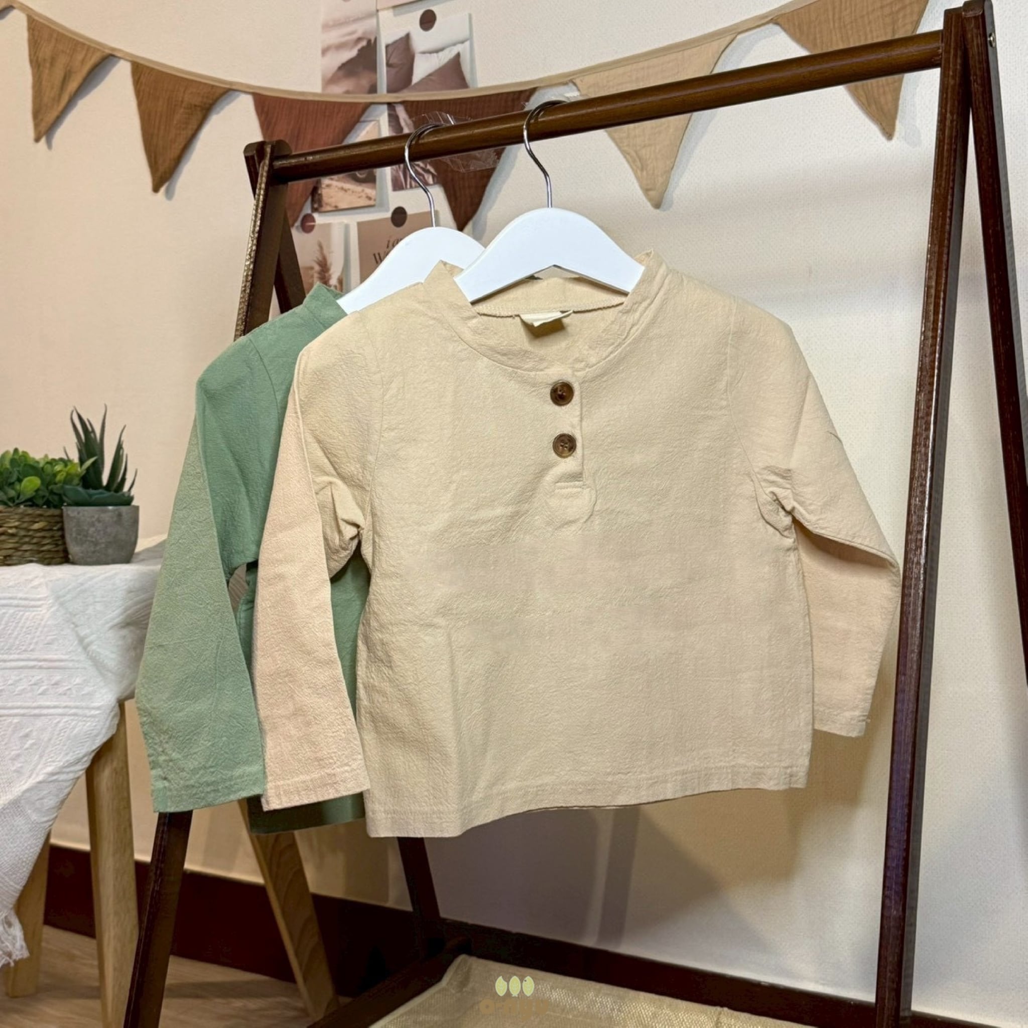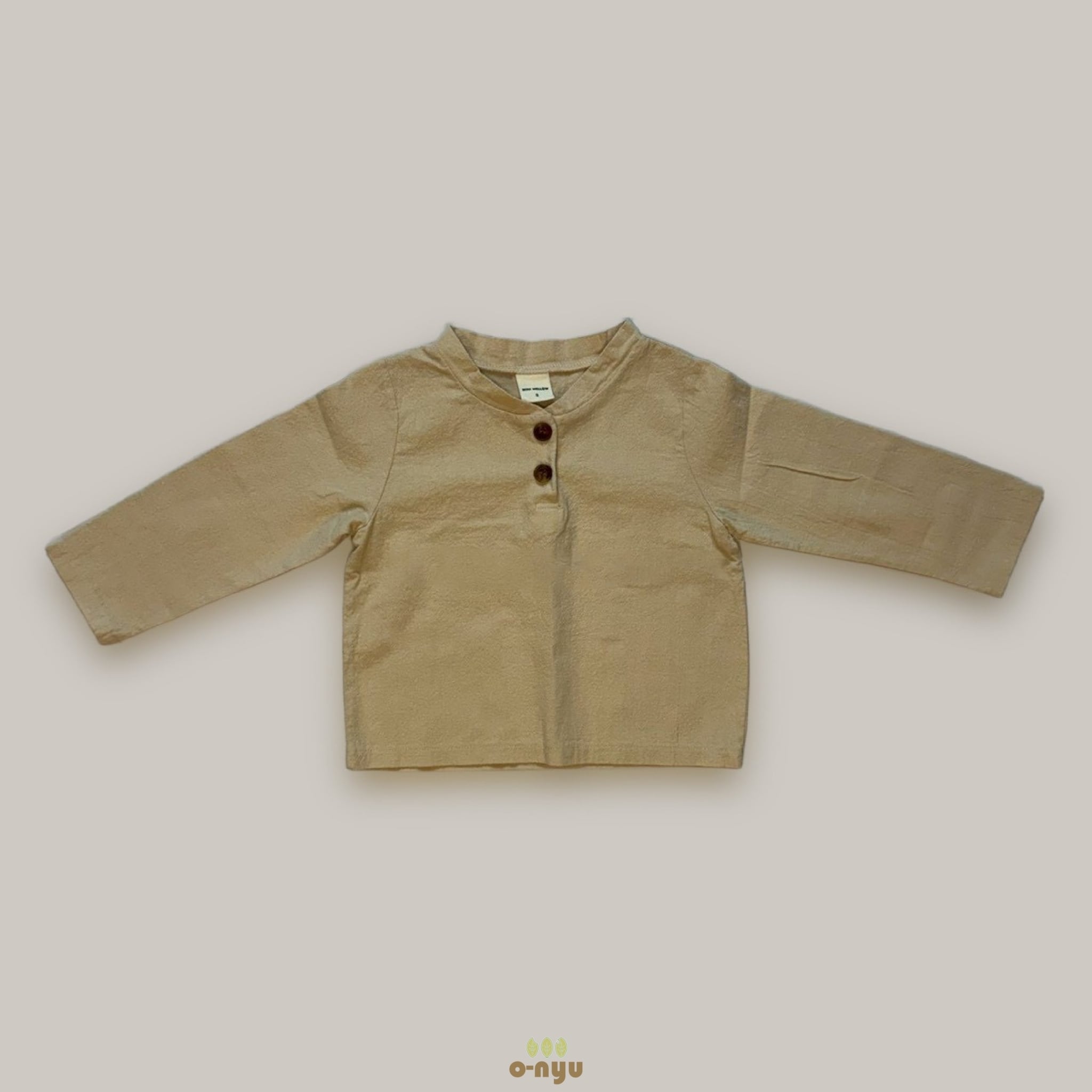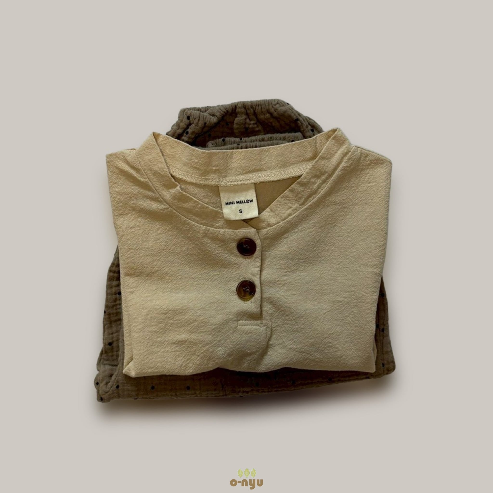 シンプルで上品なデザインと、ダブルガーゼ素材のやわらかさが魅力のヘンリーネックシャツです。