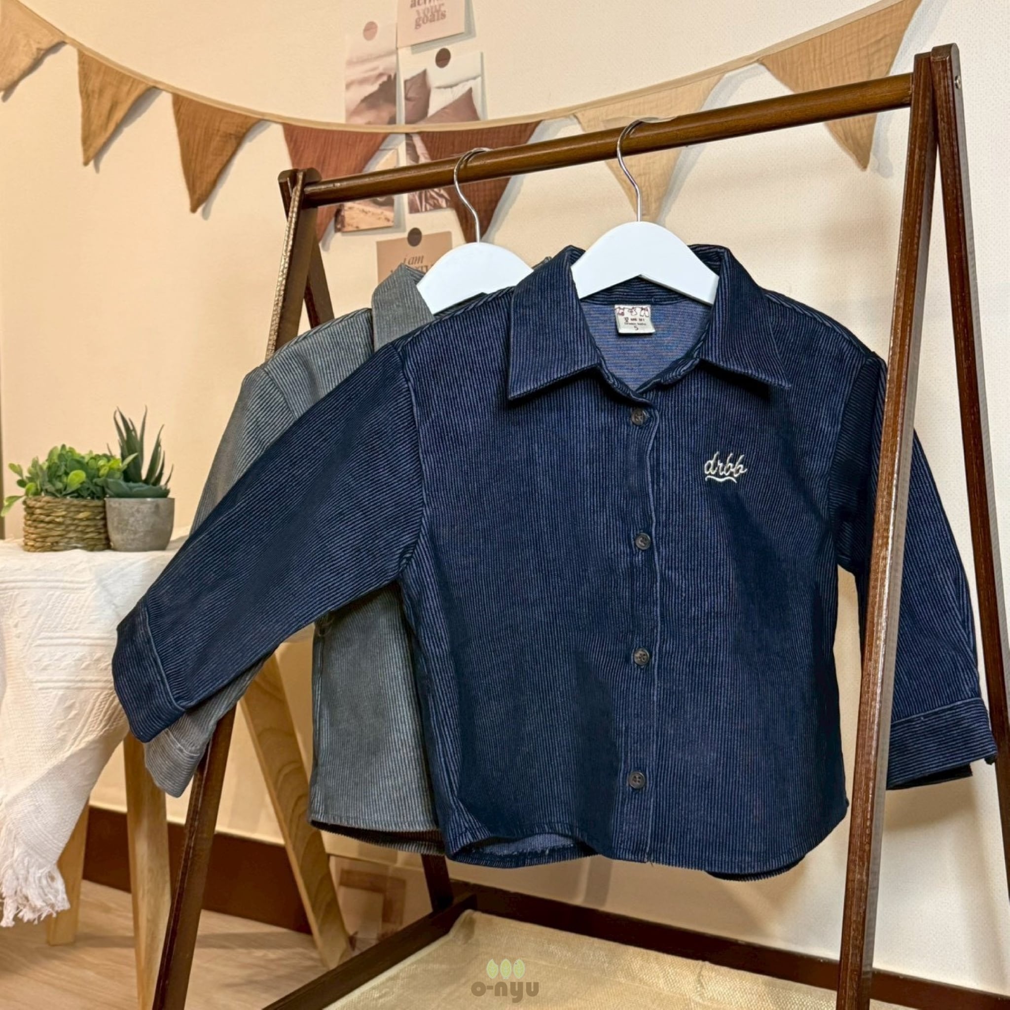 やわらかなコーデュロイにデニムの深みのあるトーンを加え、ほのかなナチュラルな光沢とあたたかみを同時に感じられるシャツです。